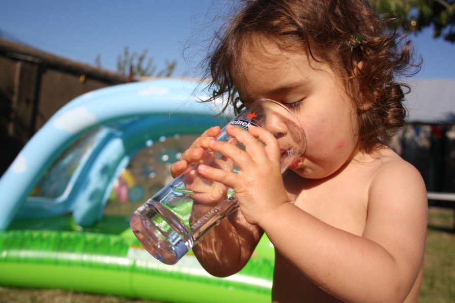 bébé boit dans le verre de papa!! la classe!